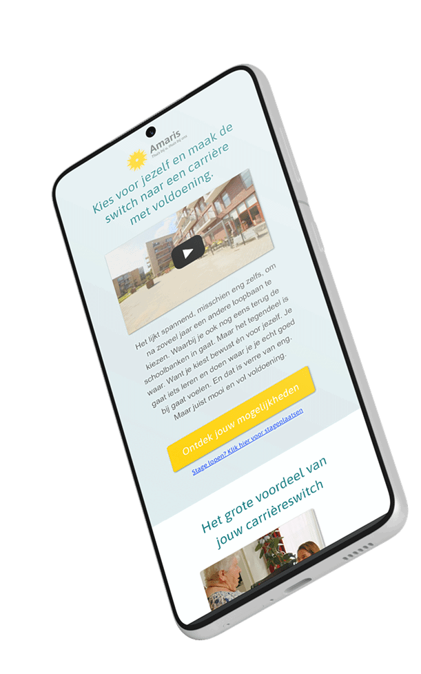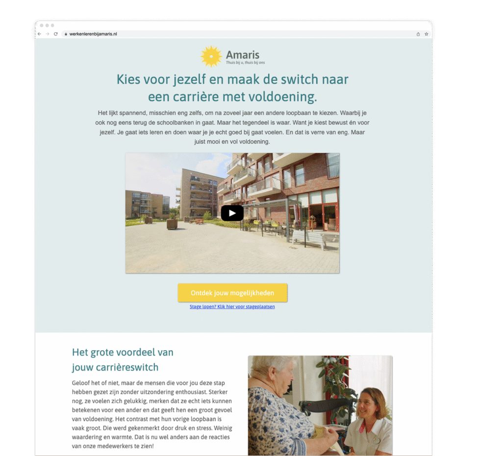 Tijdens eerdere campagnes zagen we veel zoekgedrag naar leer-werktrajecten. Een kans die we met beide handen grepen. Veel zij-instromers verlangen naar betekenisvol werk, maar twijfelen: past de zorg bij mij? Is Amaris de juiste plek?