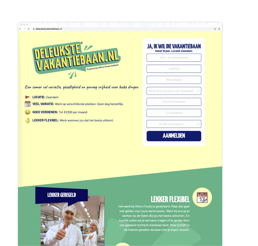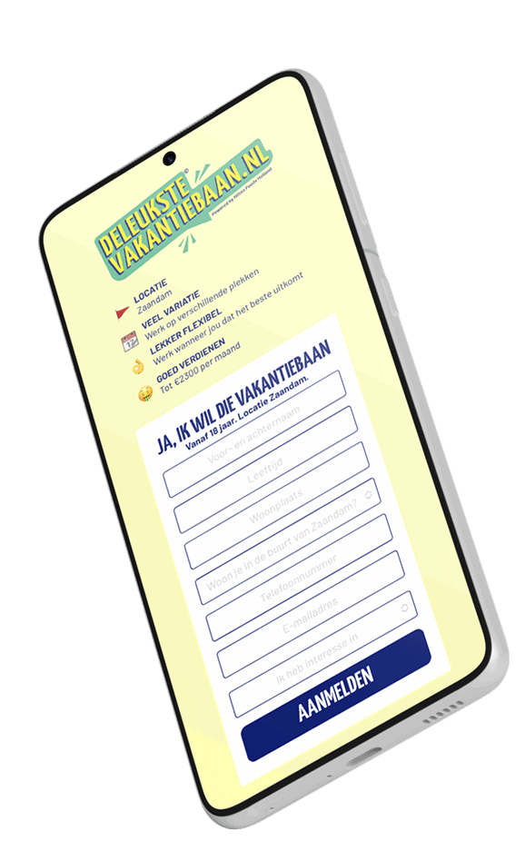 Met die ingrediënten ontwikkelden we een TikTok-style campagne, inclusief opvallende video’s per thema en een eigen wervingshub: deleukstevakantiebaan.nl.