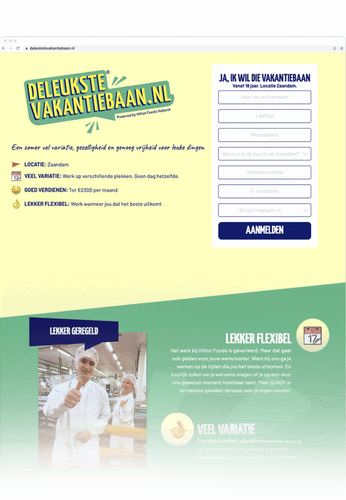 Geen standaard template, maar maatwerk dat klopt. Heb je één campagne nodig rond een specifieke functie? Dan maken we een campagnepagina die precies het juiste verhaal vertelt. Heb je continu vacatures openstaan? Dan bouwen we een complete werken-bij-website die kandidaten blijft aantrekken. Altijd afgestemd op de groeifase van jouw bedrijf.